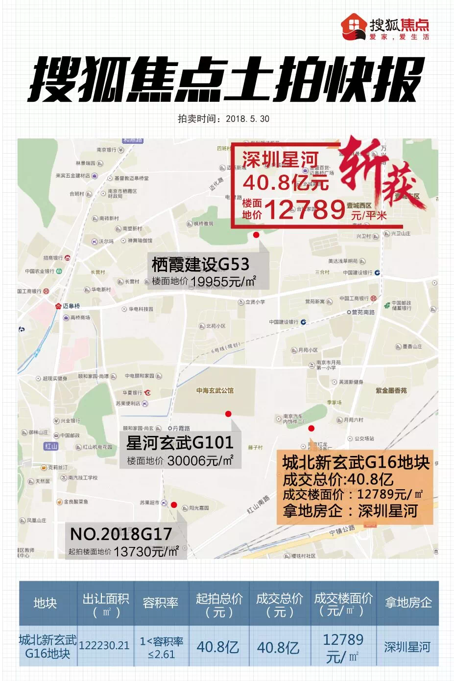2、新玄武G16地块被星河以底价40.8亿拿下,成交楼面价12789元/平。