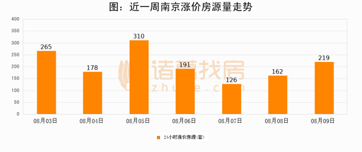 根据诸葛找房数据显示,南京24小时涨价房源量为219套,较08月08日增加57套,环比上涨35.2%。与此同时,涨价房源占比小幅扩大,业主信心有所提升。