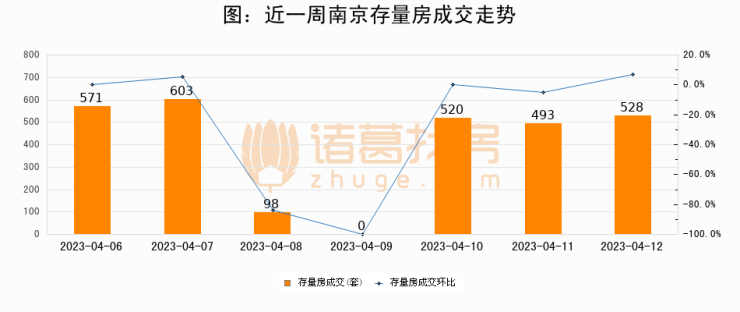 从存量房来看,2023年04月12日南京存量房单日成交528套,比昨日增加35套,环比上涨7.1%。从近一周存量房成交来看,南京存量房日均成交套数为401套,04月12日单日成交528套,高于近一周平均水平31.7%。
