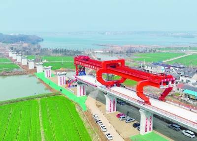 记者了解到,在南京市六合区内,北沿江(沪渝蓉)高铁沪宁段新建正线长度17.2公里,包含455榀箱梁架设任务。“梁场位于仪征境内,每榀箱梁重约700吨,架设时由900吨的运梁车运送到现场。”中铁十九局集团沪渝蓉高铁站前13标指挥长曾灵振介绍,目前该标段工程进度已完成桩基73%、承台53%、墩身35%。