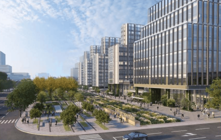 2019年,项目规划调整,总建面调整为63.6万方,容积率从6.4和6.5分别降低为3.35和3.8,原计划要盖的240米高楼也砍至50米高。其中科研设计约18.3万方 ,商业配套约17.8万方,酒店式公寓约6.3万方,住宅约18.2万方,另有幼儿园约5000平米,小学约1.3万方,还将建设社区中心约1.2万方。