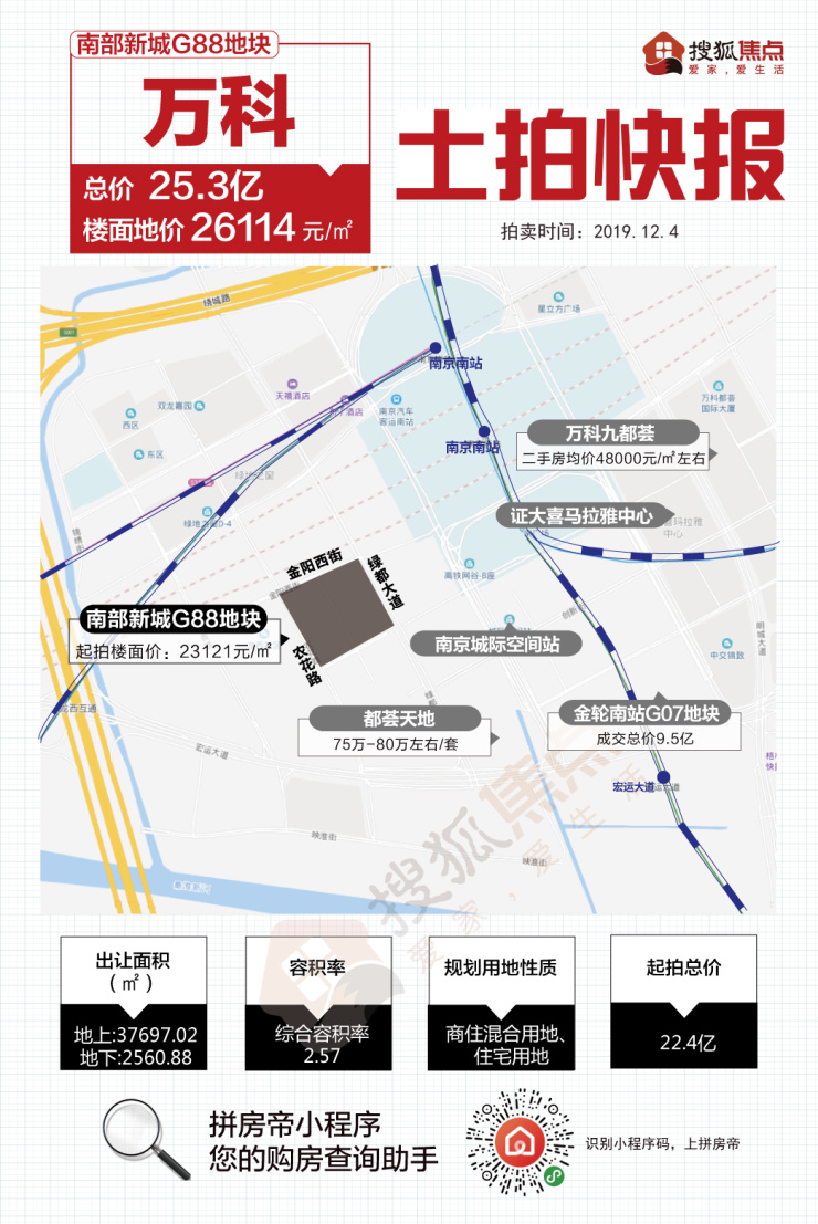 3、南部新城G88地块经过30轮竞价,被万科拿下,成交楼面价26114元/平。