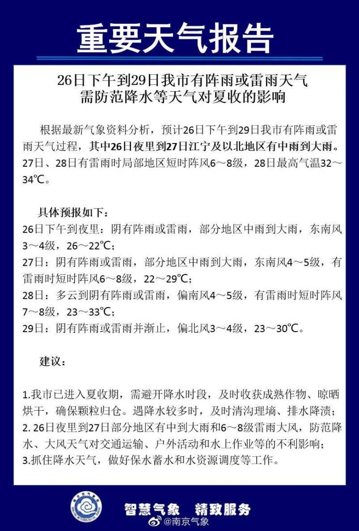 27日-28日沿淮和淮北地区有短时强降水及局部8~10级雷雨大风,户外活动与生产作业避开强对流天气,注意人身安全。27日-28日水面风力较大,航运和水上作业需注意安全。我省已进入强对流天气多发季节,建议加强户外搭建物、广告牌匾等设施的巡查及加固。