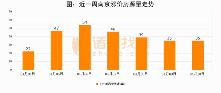 根据诸葛找房数据显示,南京24小时涨价房源量为35套,较04月09日持平。