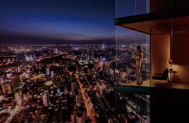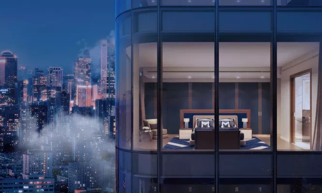 “在全国第四座中环综合体之上,既有60-120平米的云端行政公寓,也有160-260平米的千万级大平层产品。每户3.6米的层高,部分单位结合全景落地玻璃弧设计,营造出横卧云端之上俯瞰城心的上帝视角。另外还将提供空中花园、无边际泳池、会所、健身房等高端配置,以及对标文华东方奢华酒店的物业服务标准。”