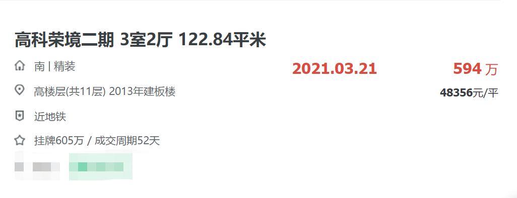 以仙林湖的高科荣境为例,南京链家网显示,该小区的二手房挂牌价在4.5—5.2万/㎡,成交价在4.4—4.6万/㎡之间,今年3月成交的一套122㎡户型,成交单价更是达到了4.8万/㎡。