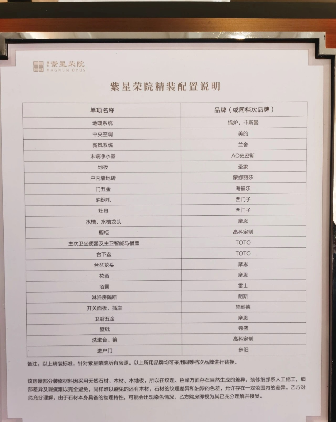 在装修标准方面,选用菲斯曼地暖、美的中央空调、兰舍新风、史密斯净水器、西门子油烟机灶具等,精装配置高于周边竞品。