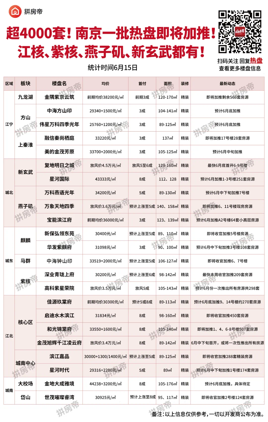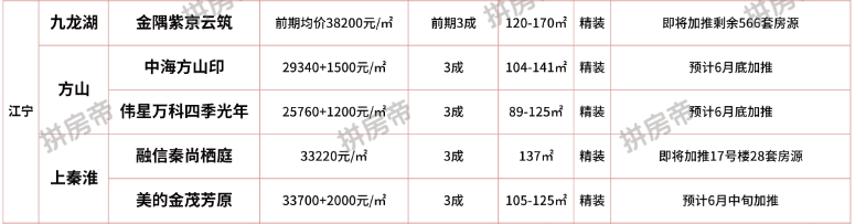 燕子矶劳模盘万科燕语光年基本每月加推一次,预计将在本月底加推7号楼。而万科四季天地也传出消息将在近期加推66套现房房源,户型建面140、158㎡,放风价3.6万元/㎡,首付预计将上涨至5成。