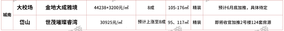 河西南岸岱山新城的“独苗”世茂璀璨睿湾也将在本月收官加推2号楼,共124套精装房源,户型建面95、117㎡,前期均价30925元/㎡,首付更是要8成,月初开盘的电建还是3成首付,不仅让血拼哥感叹,这涨的也太快了。之后的3-6个月内,岱山板块也将进入房荒的尴尬境地。