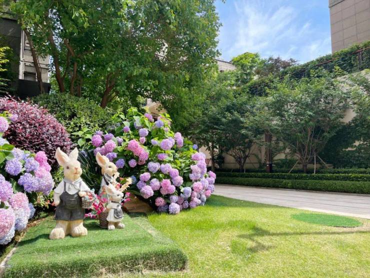 在景观打造上,利用原有地形,因势利导,规制“一环两轴四园多院”园林意境,移步异景,趣味盎然。不经意的转角就可遇见花团锦簇,居住在这儿,时刻被鲜氧绿植包围。