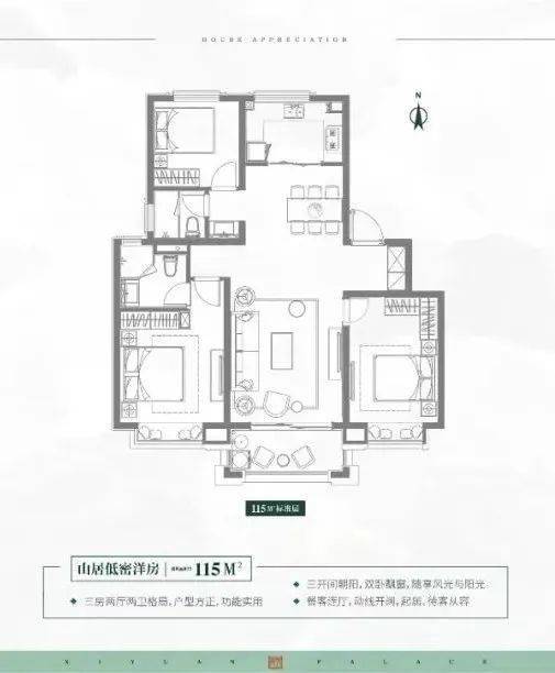 建面约115㎡即将加推,这个户型非常实用,能够满足不同家庭的居住需求。