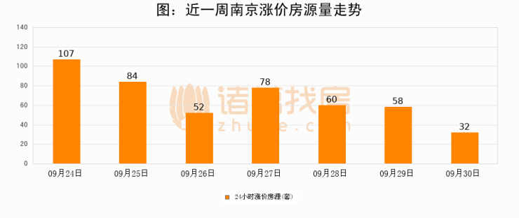 根据诸葛找房数据显示,南京24小时涨价房源量为32套,较09月29日减少26套,环比下降44.8%。与此同时,涨价房源占比小幅回落,对于购房者来说是一个入市窗口期,购房者可抓住时机入市。