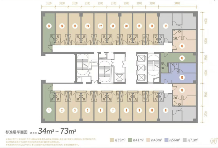 项目宣传页显示,项目多为34平米至73平米的小户型。周边二手房房价在7-10万元/平米的区间。