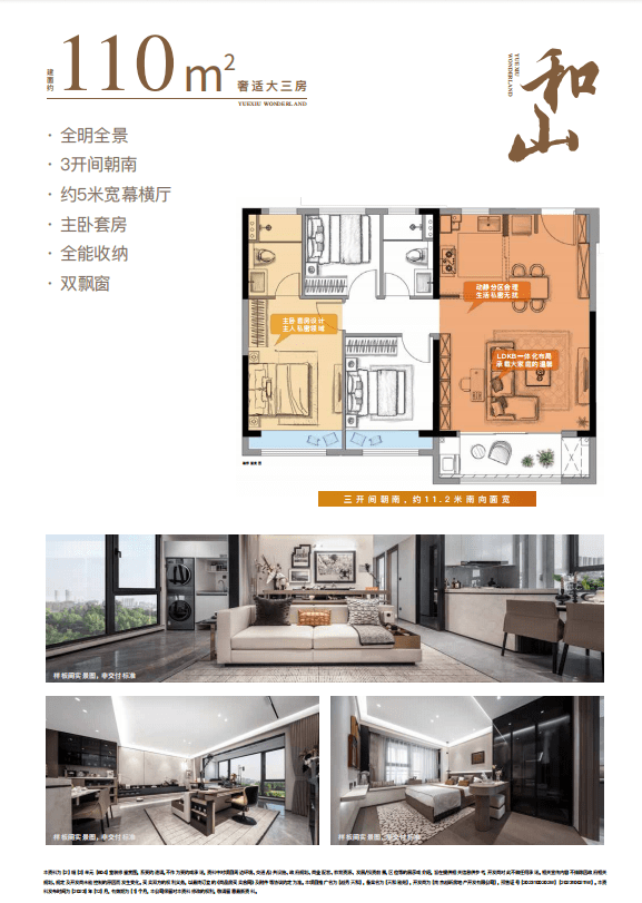 先说,建面约110㎡的和山户型,它将豪宅级“中央社交厅”直接搬到了家中。约5米宽幕横厅、宽景阳台,LDKB一体化设计,让进入户内的第一眼,就能直观感受到空间的开阔与大气。