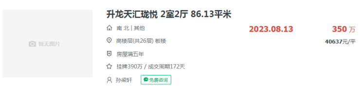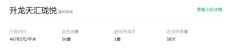 目前升龙天汇一期挂牌单价4.6万/平,但就在上个月已经有一套86平的房源卖出4万的价格了,如今跌破4万,也是趋势,这也是目前小区最低成交价。