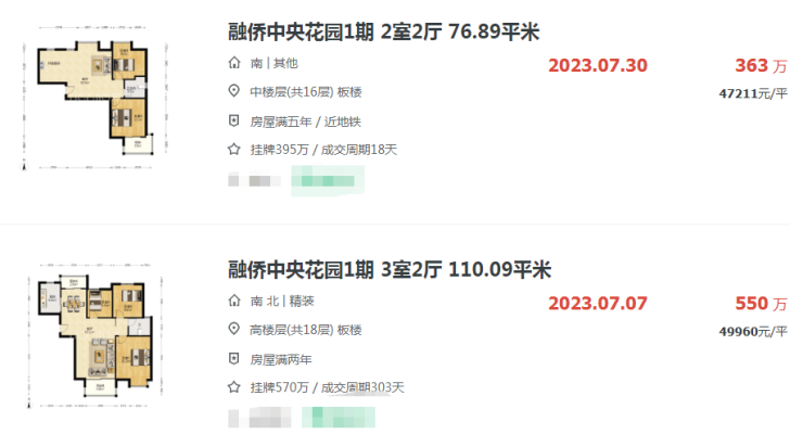 同样位于奥体的融侨中央花园上周成交了一套一期的87.49平的房源,总价378万,折合单价仅42862元/平,而从往期成交情况来看,该小区7月成交的两套房源均价都在4.9-4.7万/平左右,目前小区挂牌均价也在4.8万/平。
