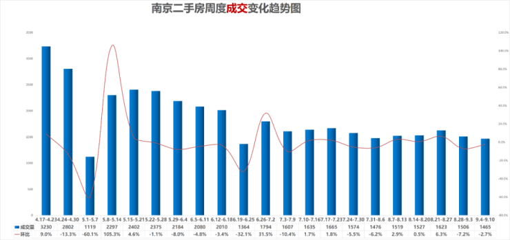 从数据来看,上周,南京全市二手房成交1465套(含高淳、溧水),环比小幅下跌2.7%。由于二手房成交数据为过户量情况,存在一定的滞后性,实际据中介反馈新政后的首个周末,二手房来访、带看明显增多,购房意向明显更高。