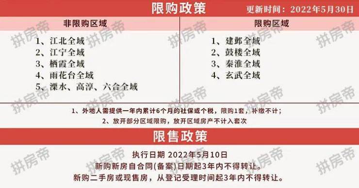 1、目前南京限购仅剩主城四区:鼓楼、玄武、秦淮、建邺,包含栖霞、雨花、江宁、江北在内的其余区域均已全域放开限购,南京人随便买,外地户口参照当地外地购房政策;