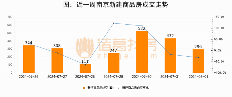 【南京成交日报】08月01日新房成交296套、二手房267套;涨价房源162套