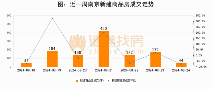 【南京成交日报】08月24日新房成交44套、二手房134套;涨价房源17套