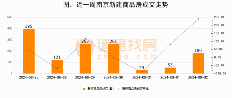 【南京成交日报】09月02日新房成交180套、二手房263套;涨价房源19套