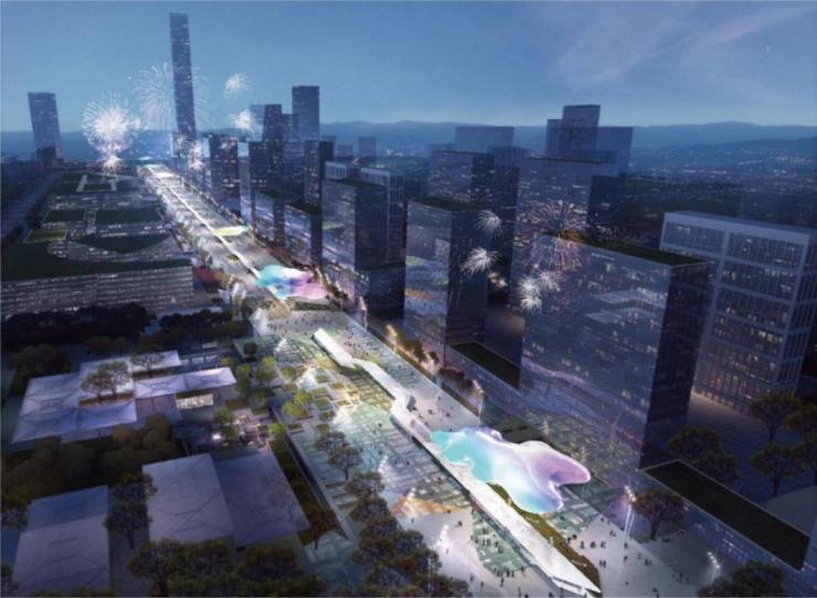 而机场河,则是与机场跑道轴平行并进的宜居中轴。沿河将布局特色街巷、滨水步道、社交广场、人文住区等,复刻秦淮河沿岸繁华盛景,创造出一种诗意优雅的水岸慢生活之境。