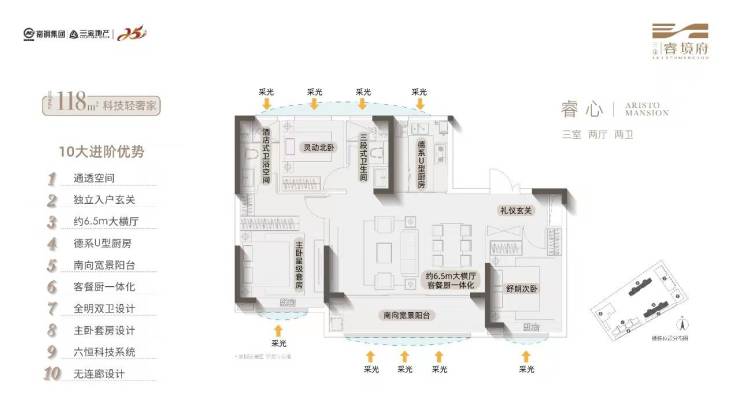 此外,为保障业主居家呼吸的每一口空气、喝的每一口水都健康安全,三金睿境府采用地源热泵、毛细管网辐射、地送顶排全屋置换式新风三大核心技术,精研六恒健康系统——恒温、恒湿、恒氧、恒洁、恒静、恒智,构建了一个全新的居家生态。