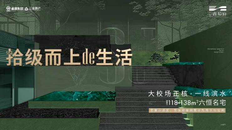 在这样的背景下,三金睿境府进行了一次产品的升维和突破——将建筑向水岸打开,带来独一无二的三维台地式滨水景观规划。