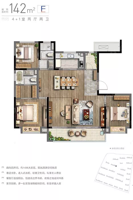 据置业顾问介绍,江与城规划24栋住宅楼,均是16-18层的小高层产品,这在江北核心区比较少见。项目较快6月开盘,计划首开靠近售楼处的14、17、18、24号楼,共计约432套房,面积89-144㎡,精装交付。