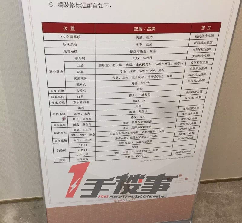 目前,项目已公开面积89、112㎡的两个样板间。根据展示的精装标准,新风系统,地暖,中央空调都是有的。在装修设配和材料的选择上,用的也是品牌,包括菲斯曼、松下、方太、美的、西门子等。