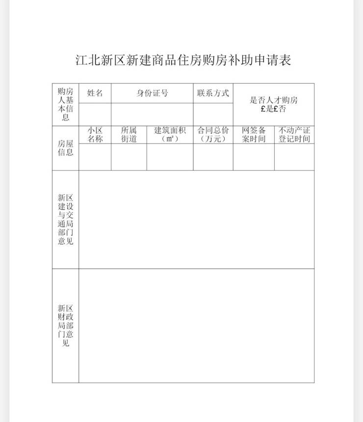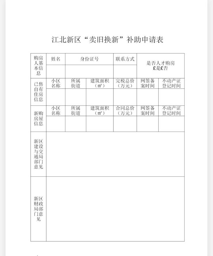 江北新区新建商品房购房补助及“卖旧换新”政策实施细则