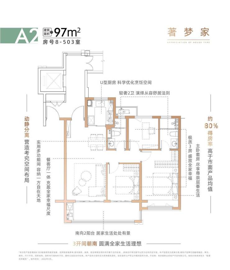 房子是美好生活的载体,一个好的户型,处处体现营造者的艺术匠心,人本尺度的关怀。南京新城振业·铭著风华建面约97㎡雅致三房,充分考量空间运用及人居品质,不管是两人世界还是三口之家,为城市新生代家庭量身定制理想家。