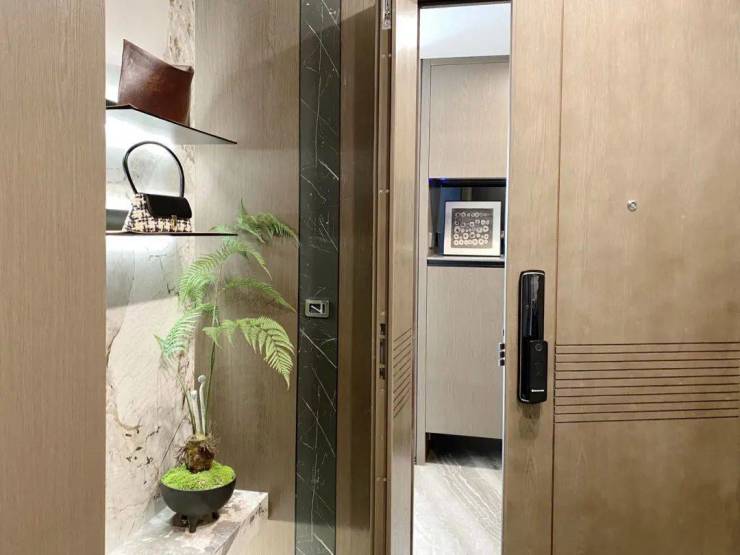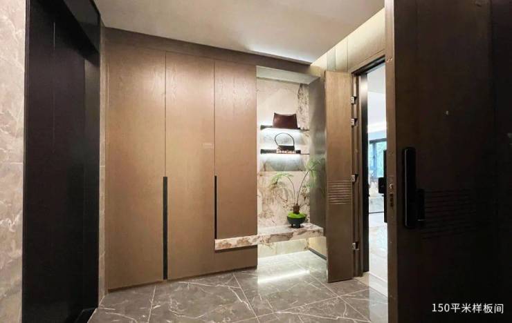 还没进样板间之前,就被项目约7㎡的独立前厅惊艳到了。项目采用豪宅专属的1梯1户设计,门口的这块面积就是业主专享,按照3.3万/㎡的放风价来算,相当于省了23万。
