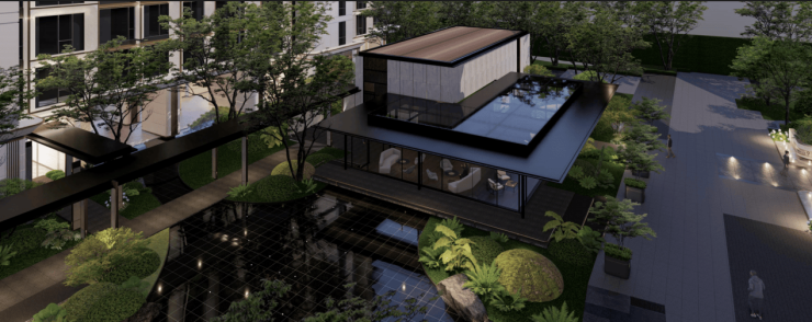 ·九庐七境:板块内惟此约9000㎡立体景观,横向约160m景观中轴之上,将无界之门、四季庭院、琉璃水院、艺术光庭、石韵流瀑、镜水浮桥、九庐书屋等七境串联,呈现一幅磅礴的立体流动画卷,成就艺术滋生与栖息之地。