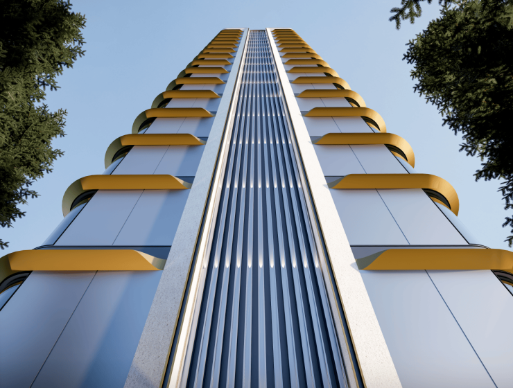 ·弧形流线立面,搭配首层弧线雕刻天然石材入户大堂,以流动曲线履新城市美学灯塔,为天空献上一首金色之诗。独特艺术画框立面、令人愉悦的3000k色温立面,营造宁静的归家氛围,别具质感与格调。