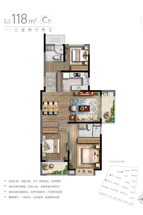 目前在售毛坯小高层,建筑面积89、95、108、119、123平米,均价27300元/平米,房源位于1-8号楼。户型设计十分人性化,主要由89-95平米温馨两房、106平米轻奢三房、119-120平米舒适三房以及部分底跃产品组成。三种房型均以人性化的考量,将舒适尺度、生活私密、功能完备、健康关怀等态度深植于产品设计之中。