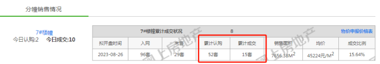 目前南京网上房地产显示,目前认购+成交上传了76套数据,去化不到7成。