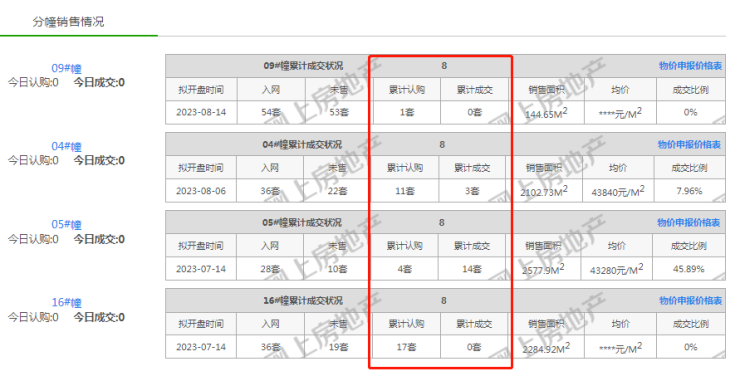 而剩下的盘,去化就不太理想了,能卖出两位数已经是不错了,很多盘都是挂0的状态。