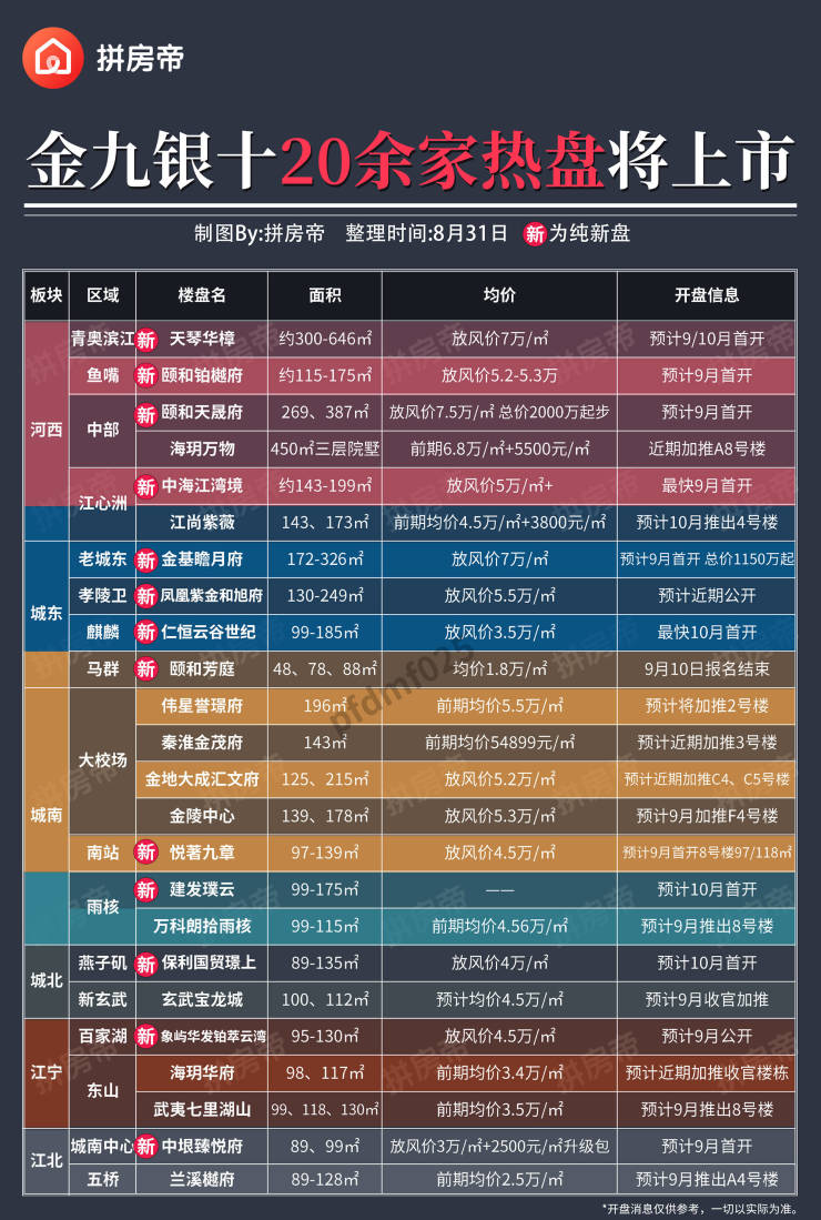 据不完全统计,金九银十有20多家热盘要上市,大家可以好好关注!