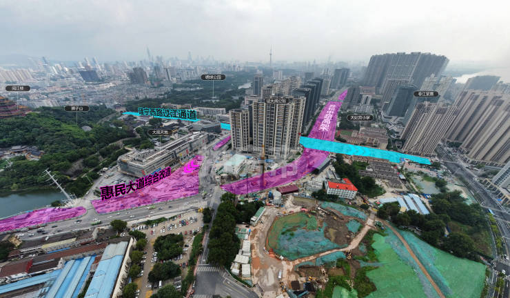 惠民大道综合改造工程是过江通道的江南连接线之一,与过江通道主线在建宁路形成地下互通立交,建成后可以实现以“快接快”方式将过江车流引导到江南快速外环系统,分别与南向的扬子江大道以及北向的幕府西路快速路相接。