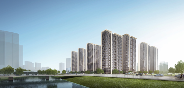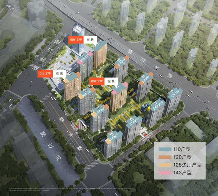 其实之前一直很好奇,为什么要在小区的西边设计这样的户型。直到看见了越江时代的鸟瞰图,我就明白了这样做的意义。