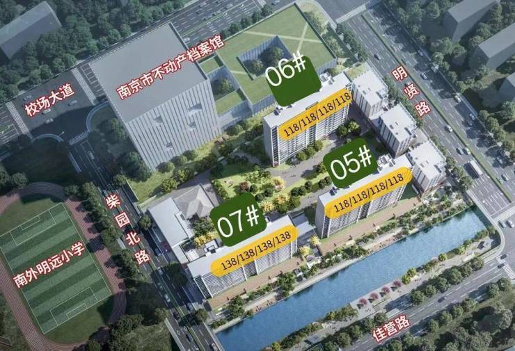 项目西侧正大门一路之隔便是南外明远小学,旁边还有规划中的幼儿园、中学,出门即校门,真正的目送式教育。南侧是南部新城机场河,外接响水河与秦淮河,一线滨水河景,机场跑道公园(在建)与油库公园(在建)南北双公园对望,稀缺景观资源区域难寻。