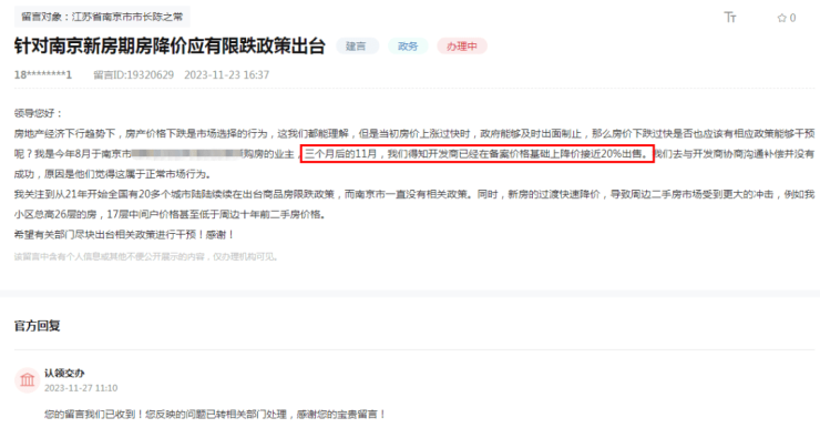 南京新房打折越来越多,业主喊话官方出台限跌令