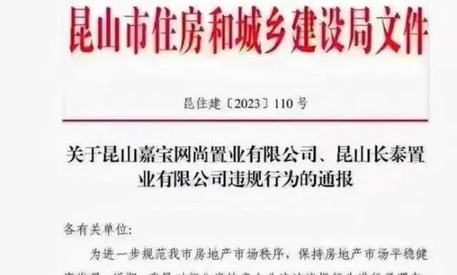 今年5月,昆山两个项目也因为“擅自大幅度降价销售,扰乱房地产市场正常秩序”而受到处罚。