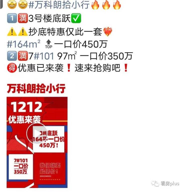 小行的万科朗拾二期一套164平的底跃,总价450万,一套97㎡的一楼房源,总价仅350万,折合单价不到3.5万/平。