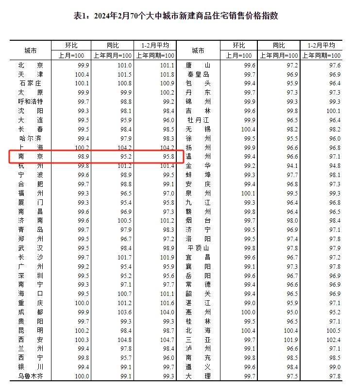 刚刚国家统计局发布《2024年2月份70个大中城市商品住宅销售价格变动情况》。