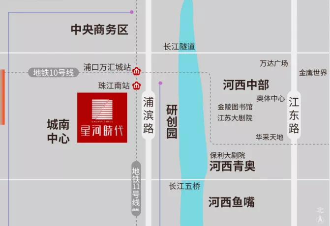 沿线规划有市民文化中心、商业中心、星级酒店、文体公园、图书馆、美术馆、华润万象综合体、沃尔玛山姆会员店、南京地下城、垂直森林、砂之船奥特莱斯、万达广场等丰富配套,更新升级之后将成为一条黄金走廊,集聚各种优质资源,推动板块的迅猛发展。