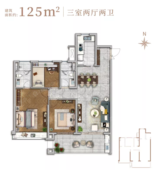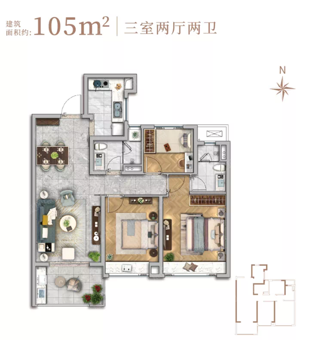 标准三大件,全德系精装,大金中央空调、瑞士兰舍的新风和德国威能的地暖,卫浴使用汉斯格雅、杜拉维特等高端品牌,基本都是豪宅标准!