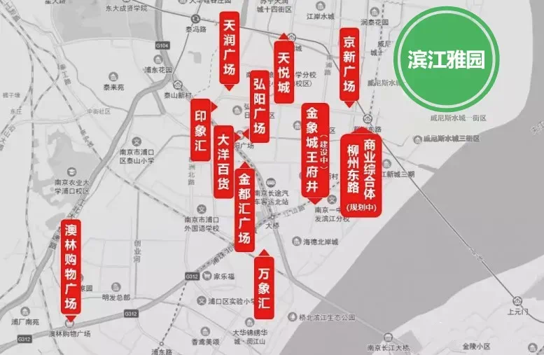 根据11号线一期的线路图可以看出,该条线路串联起了五桥、江北核心区、桥北,可以说是整个江北的城市脊梁,意义非凡。这其中受益较大的当属桥北, 11号线建设完成后,桥北片区将进入3条地铁时代,3号线直达江南主城,S8号线未来将继续南延至浦口火车站,连通江北,11号线更是让桥北与江北核心区连为一体。11号线建成后桥北居民将能够通过11号线从而换乘4号线、10号线过江,将很大程度上缓解桥北轨道交通的过江压力,桥北前往河西、鼓楼将新增一条快捷通道。仅从现在来看,桥北的交通在刚需板块中也是非常有优势的。桥北距离鼓楼仅1站地铁,距离新街口也不过是9站地铁,对于上班族真的太友好!商业方面,前段时间桥北万象汇开业,引入240余家甄选店铺,其中超50%品牌首进区域,为板块的商业再添一把火。除此之外滨江雅园南面靠近商业中心,周边超10大商业体齐聚。外有苏宁环球天润广场、苏宁环球大酒店、天悦城、印象汇、弘阳广场等大型商业环绕;内有社区底商,周边银行、超市等各项配套设施齐全。