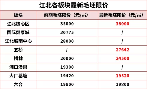核心区较高毛坯限价从5月的3.5万/㎡一跃至3.8万/㎡,桥林也从2万/㎡直接提至2.45万/㎡。大厂、六合甚至浦口汤泉的毛坯限价都逼近2万/㎡!
